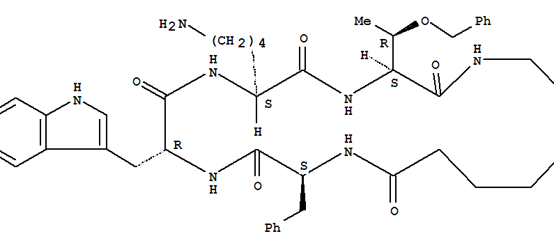InChI:InChI=1/C44H57N7O6/c1-30(57-29-32-18-8-5-9-19-32)40-44(56)46-25-15-3-2-10-23-39(52)48-37(26-31-16-6-4-7-17-31)42(54)50-38(27-33-28-47-35-21-12-11-20-34(33)35)43(55)49-36(41(53)51-40)22-13-14-24-45/h4-9,11-12,16-21,28,30,36-38,40,47H,2-3,10,13-15,22-27,29,45H2,1H3,(H,46,56)(H,48,52)(H,49,55)(H,50,54)(H,51,53)/t30-,36+,37+,38-,40+/m1/s1