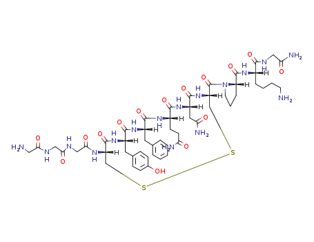 N-(N-(N-Glycylglycyl)glycyl)-8-L-lysinevasopressin is White powder, while it's Molecular Formula is C52H74N16O15S2. N-(N-(N-Glycylglycyl)glycyl)-8-L-lysinevasopressin is an analogue of vasopressin used as a vasoactive drug in the management of hypotension. N-(N-(N-Glycylglycyl)glycyl)-8-L-lysinevasopressin is used norepinephrine-resistant septic shock and hepatorenal syndrome. N-(N-(N-Glycylglycyl)glycyl)-8-L-lysinevasopressin is also used in the treatment of acute variceal bleeding.