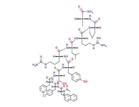Cetrorelix acetate is White powder, while it's Molecular Formula is C70H92ClN17O14. Cetrorelix Acetate is an gonadotropin-releasing hormone antagonist and is used to treat hormone-sensitive cancers of the prostate and breast.